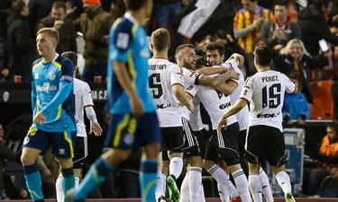 El Valencia celebra el gol de Javi Fuego. | EFE Alves paró un penalti (3-1) El Valencia se sube a la cuarta plaza