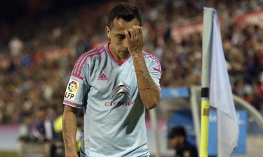 Orellana se marcha triste tras ser expulsado. | EFE Por su lanzamiento de césped Orellana, sancionado con un partido