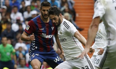Isco pugna por un balón. | EFE Cómoda victoria (3-0) Cuarenta y cinco minutos de Isco bastan para pensar en el Atlético José Manuel Puertas 21 Cristiano, Chicharito y Jesé sentencian al equipo armero en un plácido sábado para los blancos NARRACIÓN