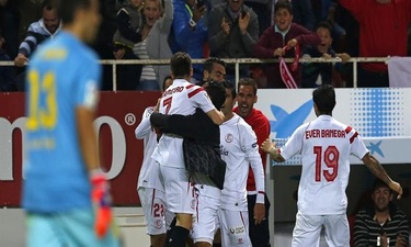 El Sevilla celebra el segundo tanto en su cuenta | EFE Gameiro empató en el 83' (2-2) El Sevilla da emoción a la liga Sergio Valentín 5 Messi y Neymar redondearon una media hora asombrosa del Barcelona. Un error de Bravo dio alas a un Sevilla que empató en los últimos minutos. Narración