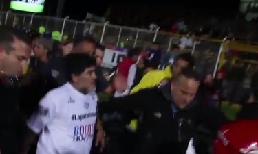 Play Contra aficionados y periodistas Maradona, a puñetazo limpio tras el Partido por la Paz 24 comentarios El exjugador perdió los nervios tras el choque cuando se dispuso a dar una vuleta al campo para saludar a los aficionados.