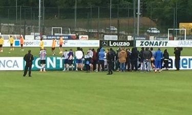 Invasión de campo en el entrenamiento del Deportivo de La Coruña. | Twitter Medio centenar de aficionados invaden el entrenamiento del Dépor