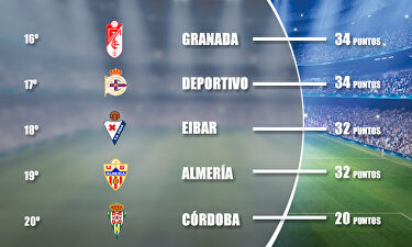 Clasificación de la zona baja para la última jornada. | LD Las cuentas del descenso José Miguel de Pedro