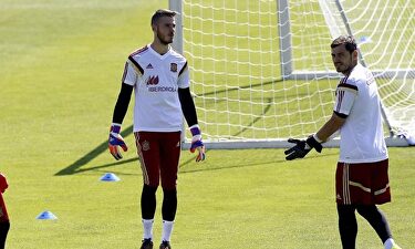 De Gea y Casillas, en un entrenamiento de la selección. | EFE Benítez vigila de cerca a Iker Casillas y De Gea