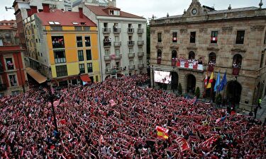 Gijón se echó a la calle para celebrar el ascenso del Sporting | EFE Asturias vuelve a llamar a la puerta José Manuel Puertas "Manolo está ahí arriba celebrándolo"