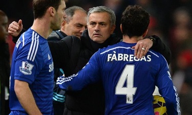 José Mourinho se abraza con Cesc e Ivanovic. | EFE El Chelsea de Mourinho ya conoce el camino para defender la Premier David Vinuesa