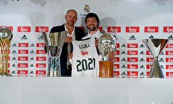 Llull, junto a Herreros, con la camiseta que marca la duración del contrato. | EFE Llull: "Ha sido una decisión durísima, la NBA es muy tentadora" Llull, seis años más