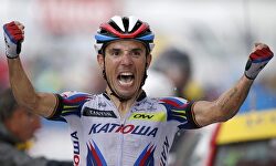 Purito celebra la victoria en Plateau de Beille. | EFE Purito se corona bajo la lluvia como el rey de Plateau de Beille