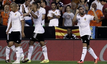 El Valencia celebra un gol | EFE El Valencia se enfrentará al Mónaco para acceder a la Champions La ida será en Mestalla. El Manchester United se medirá al Brujas.