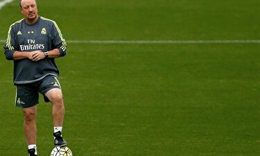 Benítez, en Valdebebas | EFE Benítez: "mi primera prima fueron 50 pesetas por empatar un derbi" "Jugaremos dependiendo de lo que ellos quieran plantear. Eso nos condiciona", afirma Benítez.