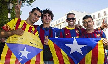 Aficionados del Barcelona con esteladas. | Twitter @assemblea El Barcelona quería "educar" a la UEFA con las esteladas