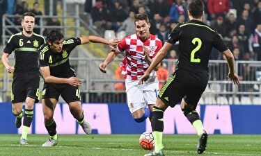 Lance del partido entre croatas y españoles. | sefutbol.com Los sub-21 dan un golpe de autoridad en Croacia (2-3)