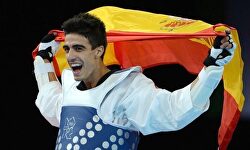 Joel González, en el momento de levantar la bandera española tras ser oro olímpico. | EFE Joel González: "Quiero pensar que levantar la bandera española no es un problema"