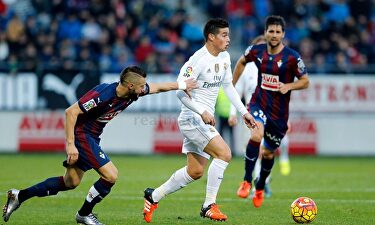 James ante el Eibar. | realmadrid.com Benítez y James quieren más el uno del otro Sergio Valentín James no entiende por qué juega tan poco y es el primer sustituido. El entrenador cree que el colombiano puede dar mucho más de sí.