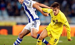 Denis Suárez protege el balón ante Sergio Canales | EFE Denis Suárez lanza al Villarreal en Anoeta (0-2)