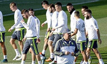 Benítez junto a la plantilla en Valdebebas| Realmadrid.com Benítez regala suerte en Valdebebas Sergio Valentín