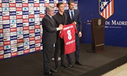 Kranevitter posa con Cerezo y Caminero. | David Vinuesa Kranevitter: "Estoy para jugar si Simeone decide que lo haga" Augusto: "Defenderé este sueño con trabajo"