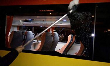 Foto del autobús apedreado.| Twitter Apedrean el autobús de unos aficionados del Madrid en Valencia El propio colectivo ha confirmado que ninguno de sus miembros ha recibido daño alguno.