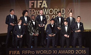 Junto a ellos figuran otros seis jugadores de la Liga: Dani Alves, Marcelo, Modric, Neymar, Messi y Cristiano.