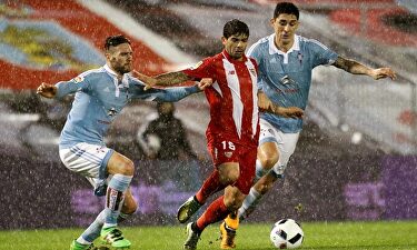 Banega (c) conduce la pelota ante Sergi Gómez (i) y Pablo Hernández. | EFE Banega apaga el sueño celeste en un minuto (2-2) Iago Aspas firmó el 2-0 a los 55 minutos, pero Banega acortaba distancias sólo uno después. Konoplyanka marcó el empate en la recta final. NARRACIÓN, por G. Domínguez