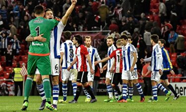 La Real asaltó San Mamés | EFE La Real se lleva el derbi vasco (0-1) Los de Eusebio fueron netamente superiores y presentan, con este triunfo, su candidatura europea. Jonathas dio la victoria al conjunto Txuri Urdin.