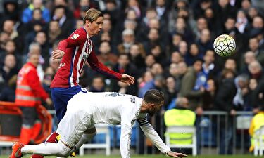 Fernando Torres pelea un balón con Ramos. | La Liga Stats El Atlético corrió 11 kilómetros más que el Real Madrid David Vinuesa Griezmann: "Corremos más que nadie" Clos Gómez se tragó un penalti a favor del Madrid "Menos mal que se ganó en Lisboa" Funeral blanco frente a un efectivo Atlético