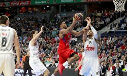 Kyle Hines entra a canasta ante la oposición de Felipe Reyes y Gustavo Ayón. | EFE El Real Madrid cae ante el CSKA y se complica los playoffs (87-96)