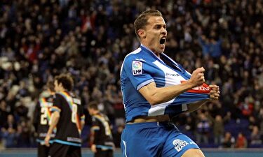 Abraham celebra su gol al Rayo Vallecano. | EFE El Espanyol coge aire a costa del Rayo (2-1) Abraham abrió el marcador y Bebé lo igualó en la segunda parte. Hernán Pérez hizo el definitivo 2-1 con un golazo de volea.