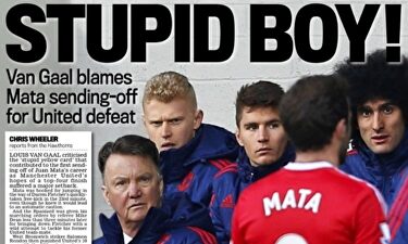El diario Daily Mail se ceba con Juan Mata. | Twitter La prensa inglesa llama "estúpido" a Mata tras sufrir la primera expulsión de su carrera