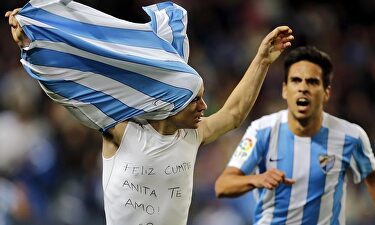 Juanpi celebra su gol al Sporting. | EFE El Málaga recupera la sonrisa y hurga en la herida del Sporting (1-0)