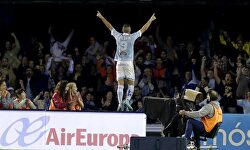 Juanpi celebra su gol al Sporting. | EFE El Málaga recupera la sonrisa y hurga en la herida del Sporting (1-0)