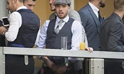 Samir Carruthers, del Milton Keynes Dons, orinando en el hipódromo de Cheltenham. | The Sun Sancionan a dos futbolistas ingleses por orinar en un vaso en público