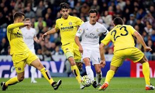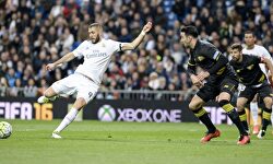 Benzema se prepara para marcar ante el Sevilla en el Santiago Bernabéu (4-0). | Archivo El Sevilla, único equipo de las cinco grandes ligas europeas que no gana fuera de casa Guillermo Domínguez El Sporting remonta ante el Sevilla y se mantiene vivo (2-1)