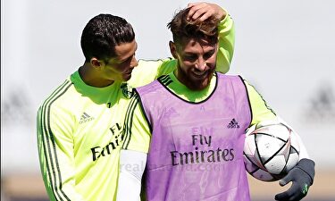 Cristiano bromea con Ramos | RealMadrid Cristiano y Benzema cumplen los plazos y Zidane, su plan Sergio Valentín El portugués ya entrena con normalidad junto a sus compañeros. Estará el miércoles. Benzema hace carrera continua.
