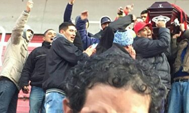 La barra brava de Independiente con el féretro. | Facebook Ultras argentinos pasean un féretro por su estadio