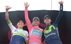Nibali con la maglia rosa, escoltado por Chaves y Valverde | EFE Nibali conquista su segundo Giro, Valverde sube al podio Muere el exciclista David Cañada