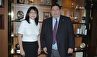 La presidenta del Valencia, Layhoon Chan, con el del Comité Técnico de Árbitros, Victoriano Sánchez Arminio. El Valencia dice que Sánchez Arminio le ha reconocido errores arbitrales