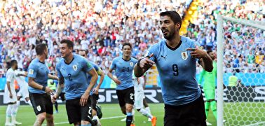 Luis Suárez (d) celebra su gol ante Arabia Saudí. | EFE Uruguay cumple con lo justo ante Arabia Saudí para meterse en octavos (1-0) NARRACIÓN, por Alfredo Somoza