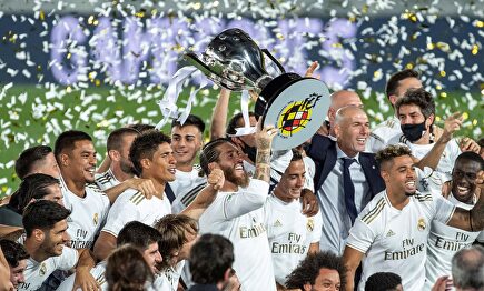 Los jugadores del Real Madrid, con el título de Liga en el Alfredo Di Stéfano. | EFE El Madrid no falla, gana la Liga del coronavirus y aumenta su ventaja sobre el Barça Guillermo Domínguez Los blancos vencen al Villarreal (2-1) y llegan a la última jornada con siete puntos de ventaja sobre el Barça, derrotado por Osasuna (1-2).