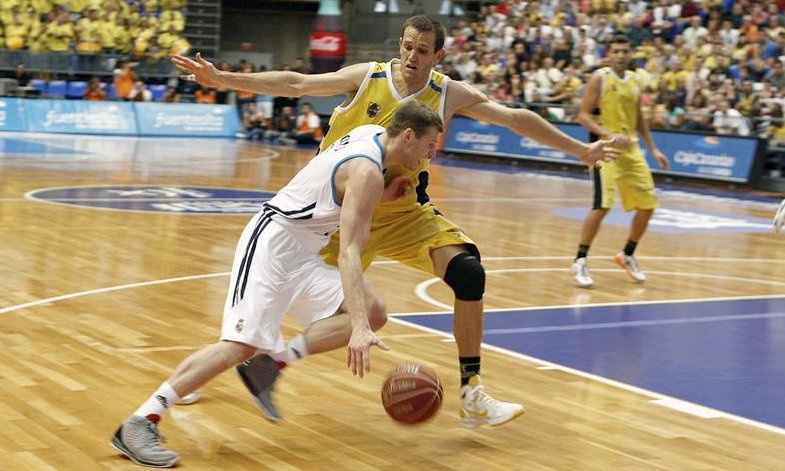 El Real Madrid sufrió mucho para doblegar al recién ascendido Canarias y solo un parcial de 18-4 en dos minutos y medio le dio el triunfo en Tenerife. Los colegiados tuvieron que ver el vídeo del último lanzamiento de Saúl Blanco para no conceder un tiro que empataba a 88 y que conducía a la prórroga después de un robo de Sergio Rodríguez y una canasta de Rudy. El Madrid pagó su largo viaje a Moscú, donde el viernes cayó ante el Khimki en la segunda jornada de la Euroliga, estuvo mucho tiempo por debajo en el marcador y Carroll jugó sus mejores minutos de la temporada para acabar con 26 puntos y 22 de nota general, mientras que en los canarios Guillén sumó 18 y 22, respectivamente.