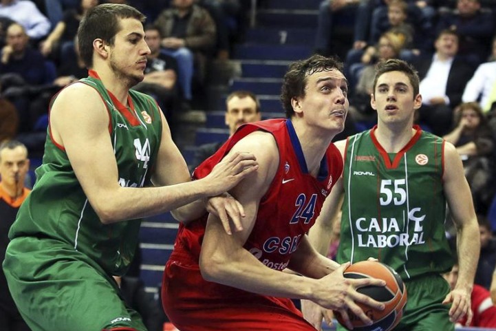 CSKA demostró su poderío y nivel en un demoledor arranque pleno de inspiración en el que anotó sus primeros siete ataques y endosó un 14-0 a un desbordado Caja Laboral, 18-6 minuto cuatro. Con los puntos interiores de Lampe y de Causeur y Milko Bjelica desde el exterior se pudo rehacer el Baskonia para llegar al minuto diez con un 26-19.
