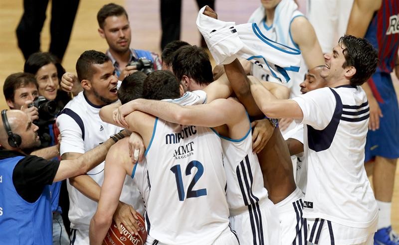 El Real Madrid ha ganado su Liga número 31 tras vencer al Barcelona Regal por 79-71 en el quinto partido de la eliminatoria. Hacia veinte años que los blancos no celebraban ante su público este título.