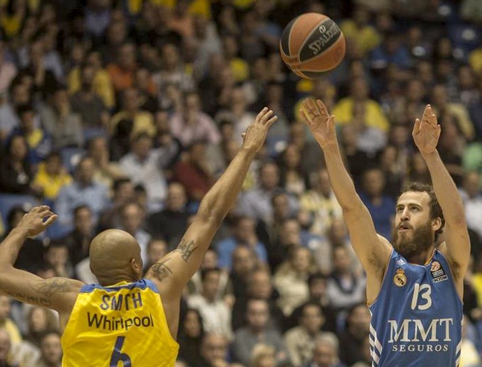 Eran los peores minutos blancos en la primera parte, donde sólo Sergio Rodríguez parecía con la mente despejada para mantener a los de Laso a flote, ante la obcecación de sus compañeros por el triple, sin acierto. Un triplazo de Guy Pnini sobre la bocina del descanso llevaba a los israelíes en ventaja a los vestuarios (43-40).