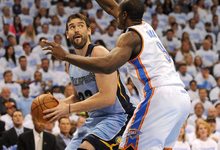 Serge Ibaka aportó ocho puntos en la victoria de los Thunder, mientras que Marc Gasol lideró el ataque de Memphis con 17.