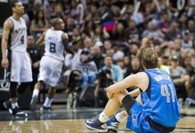 Dirk Nowitzki, sentado sobre la pista. | EFE