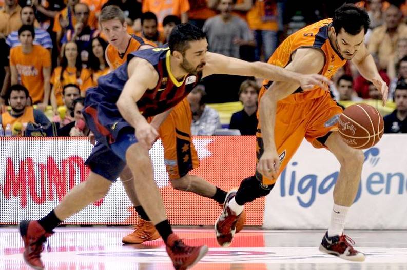 El equipo catalán lo logró, aunque le costó lo suyo. Supo aprovechar los minutos en los que el Valencia, que no contaba con Dubljevic y Aguilar por lesión, jugó con cuatro pequeños y la técnica por protestar que vio Víctor Sada apenas le afectó. Con los locales con pocas ideas y menos acierto, fue estrechando el marcador hasta empatarlo a falta de un minuto para el descanso. Sólo un triple de Doellman permitió al Valencia irse por delante a los vestuarios (31-28, m.20).