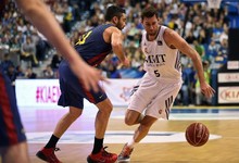 Marcelinho muestra su alegría tras marcar la canasta de la victoria. | EFE