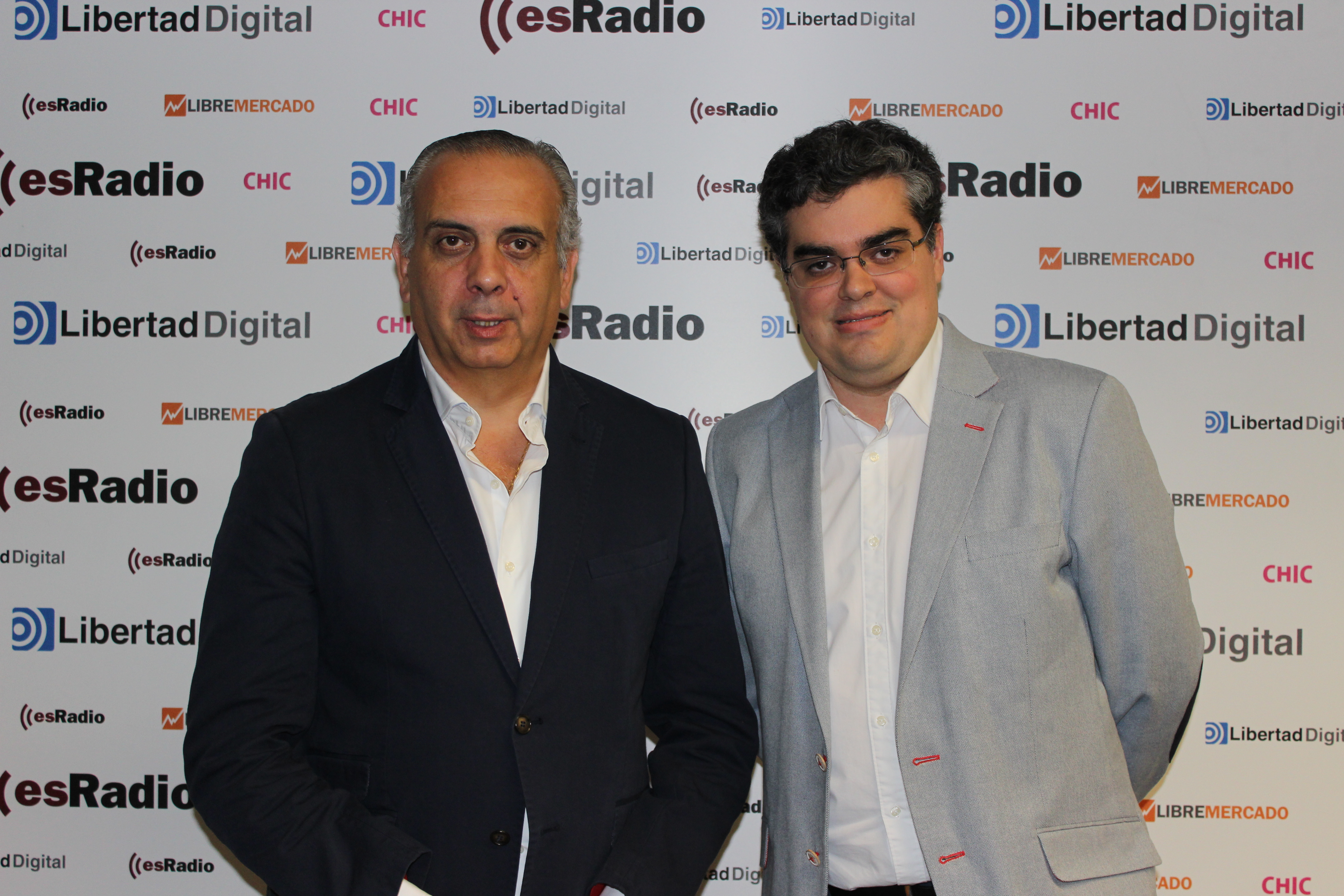 Charlando durante la visita a la redacción de Libertad Digital.