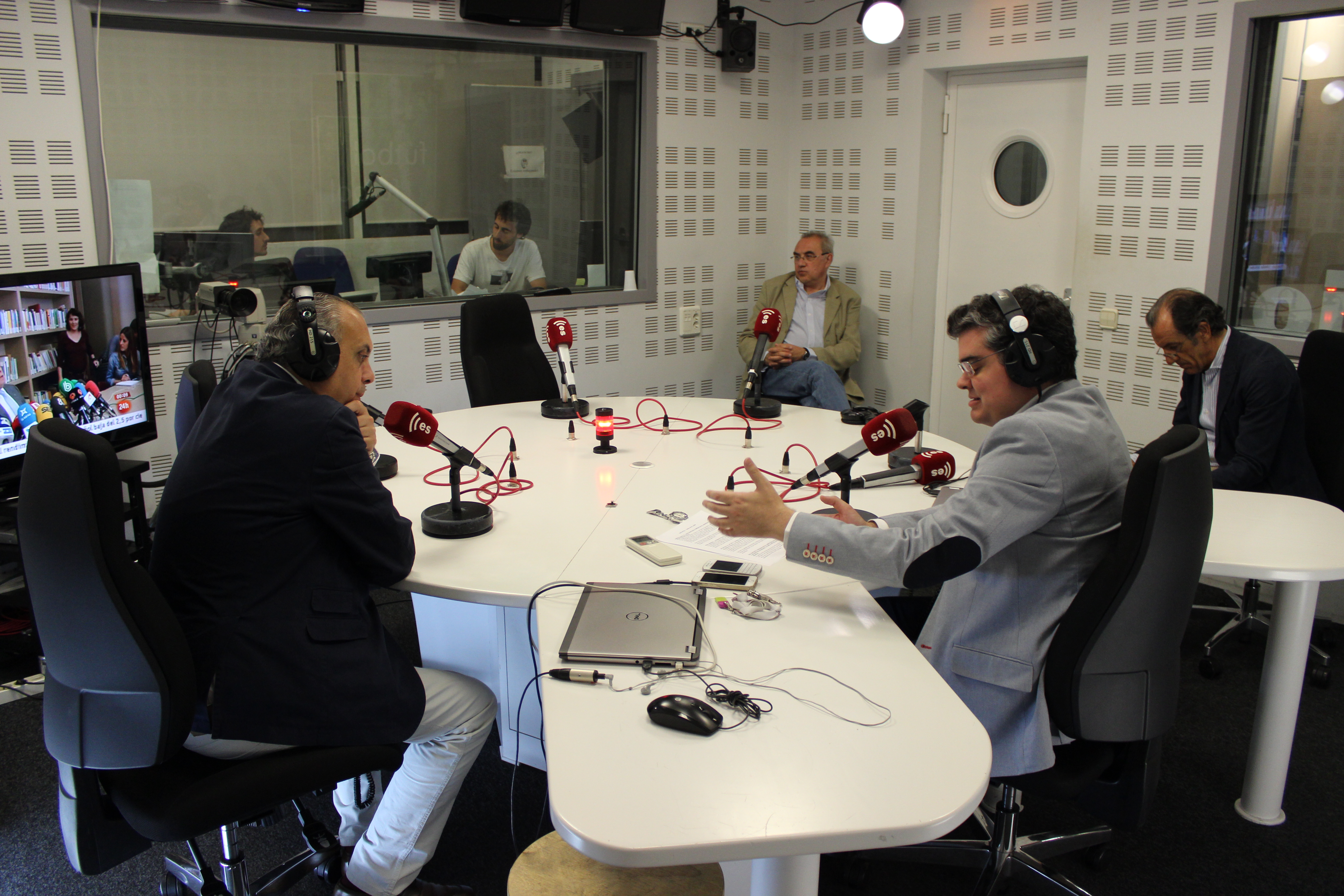 José Luis Sáez, viendo a los compañeros de 'En casa de Herrero', que estaban en directo, junto a Vicente Azpitarte.