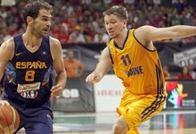 José Manuel Calderón, durante el partido contra Ucrania en Badalona. | EFE